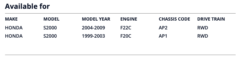 - Engine & Model: Fits 1999-2003 (F20C) and 2004-2009 (F22C) Honda S2000.