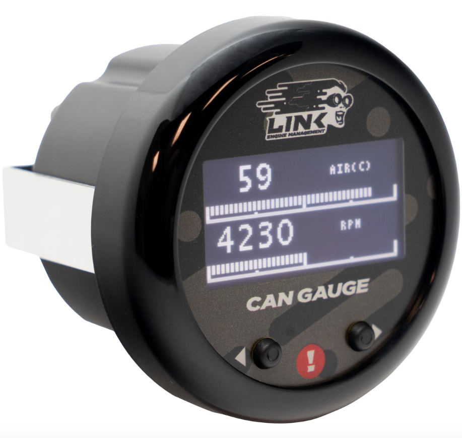 The Link CAN Gauge is a compact OLED gauge for displaying real-time data from your Link ECU’s CAN stream. Supported parameters such as boost pressure, air/fuel ratio, coolant temperature, fuel pressure, ethanol content, etc. can be displayed.